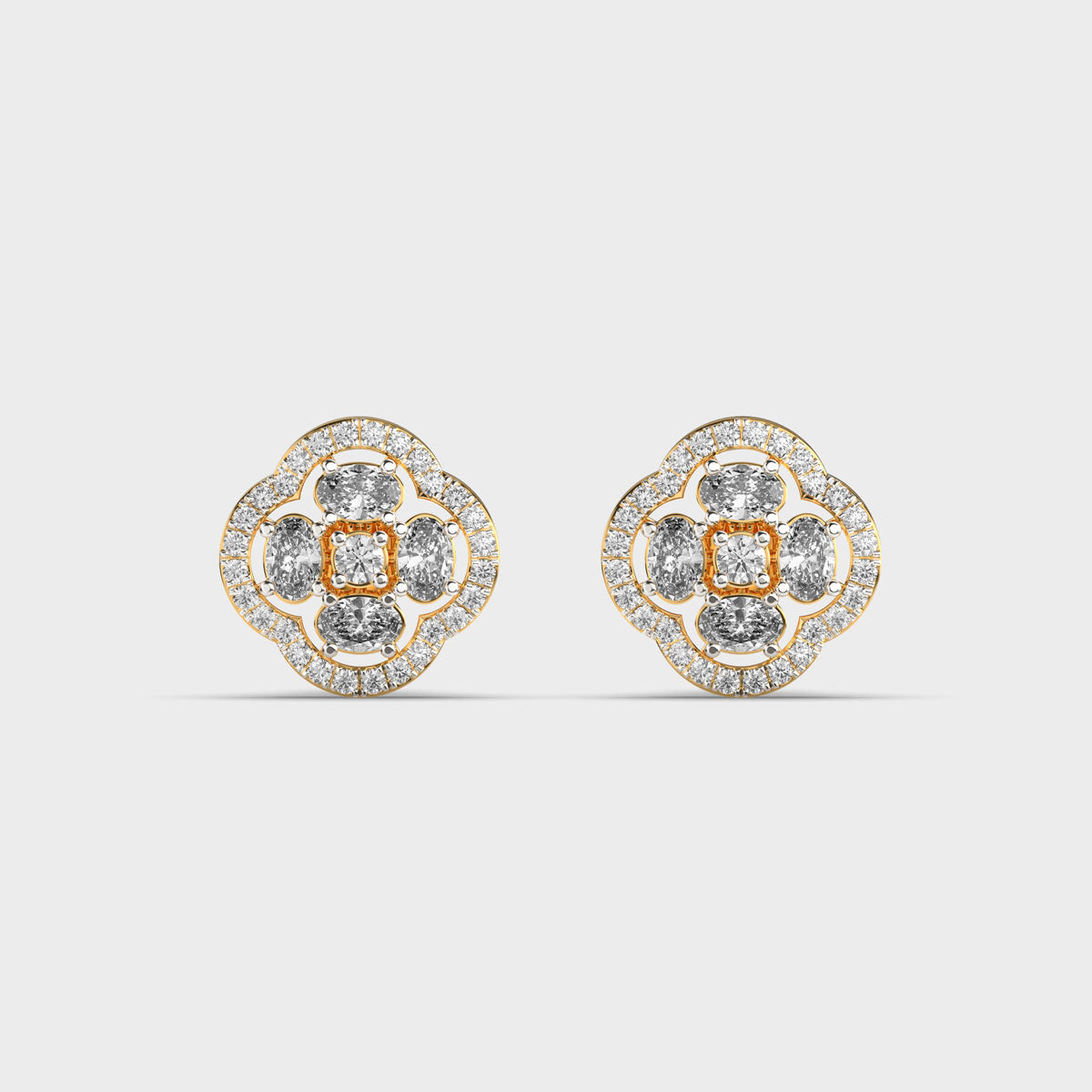 Flower with Four Petals Halo Diamond EarringsFlower with Four Petals Halo Diamond EarringsFlower with Four Petals Halo Diamond Earrings